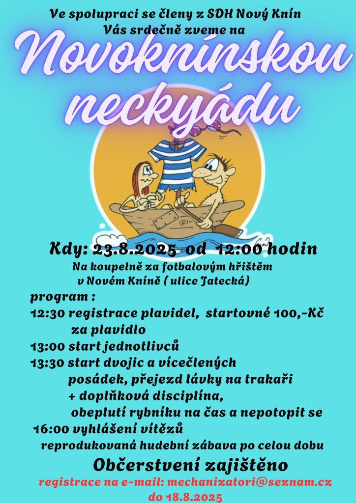 Aktuality - Závody plavidel v Novém Kníně - Novoknínská neckyáda- 23.8.2025 od 12:00 hodin